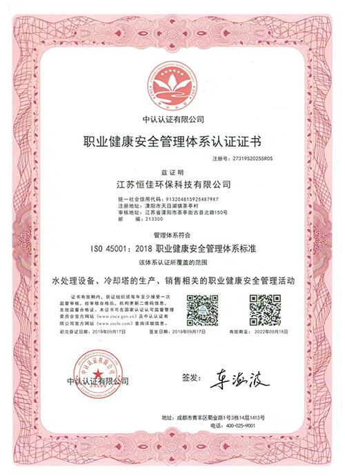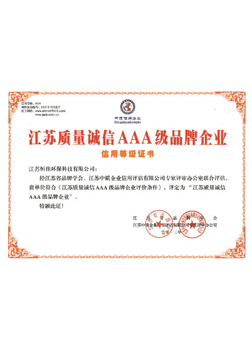 經(jīng)過多年來的不懈努力,公司已經(jīng)形成良好的管理和運作體系。獲得了<江蘇質量誠信3a品牌企業(yè)>榮譽證書 并已通過ISO9001質理管理體系認證、ISO1400環(huán)境管理體系標準及 ISO45001職業(yè)健康管理體系標準。